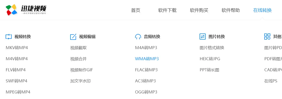 1、首先打开迅捷视频官网中的在线视频转换,然后选择mov转换mp4功能进行操作。