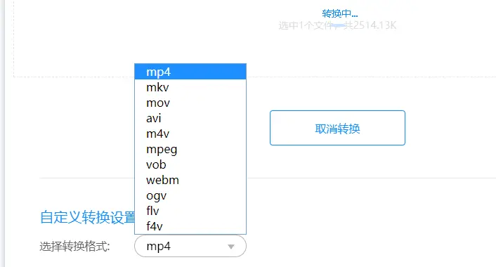 3、在自定义转换设置中选择输出视频的格式为mp4格式。