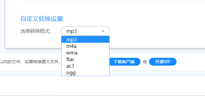 2、点击选择文件将下载完成的flac格式的视频文件上传到网站中转换音频格式。