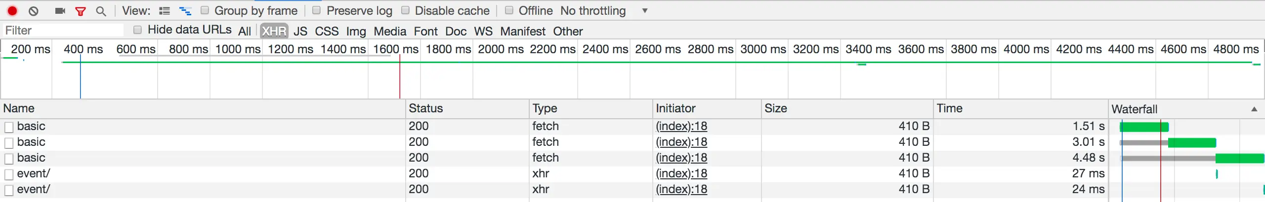 为了验证这一点,我将测试改为请求三个不同的 API 接口。