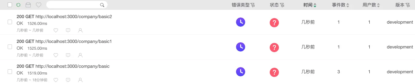 Fundebug 捕获三个请求的时间,分别为 1526,1525,1529。