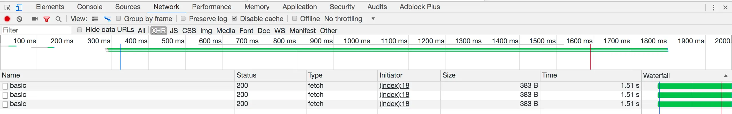 也就是说,Chrome 特意做了这样的设计。对于连续的相同请求,Chrome 会阻塞后面的请求,直到前面的完成。通过判断前面的请求返回的 Header 里面的缓存设置来决定下一步的行动。