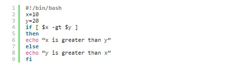 答:在if-then中使用测试命令( -gt 等)来比较两个数字,例子如下: