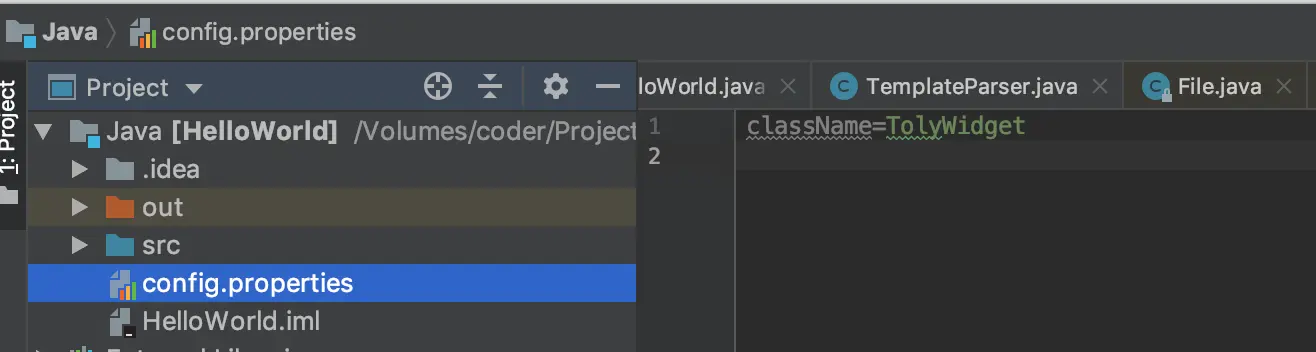 这里在项目最外面创建一个config.properties,写着键值对className=TolyWidget