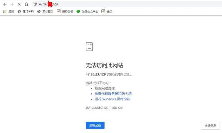 但是,在浏览器输入我们的的ip或者域名的时候是这样的,没有办法访问
