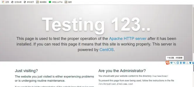 现在就可以访问这个Apache页面了,下一步就可以往上面放你的静态网站了。