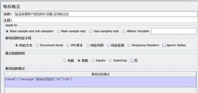 • Additionally assert value:文本验证,此处是完全匹配,勾选上此选项后再勾选Match as regular expression,可以触发正则匹配。