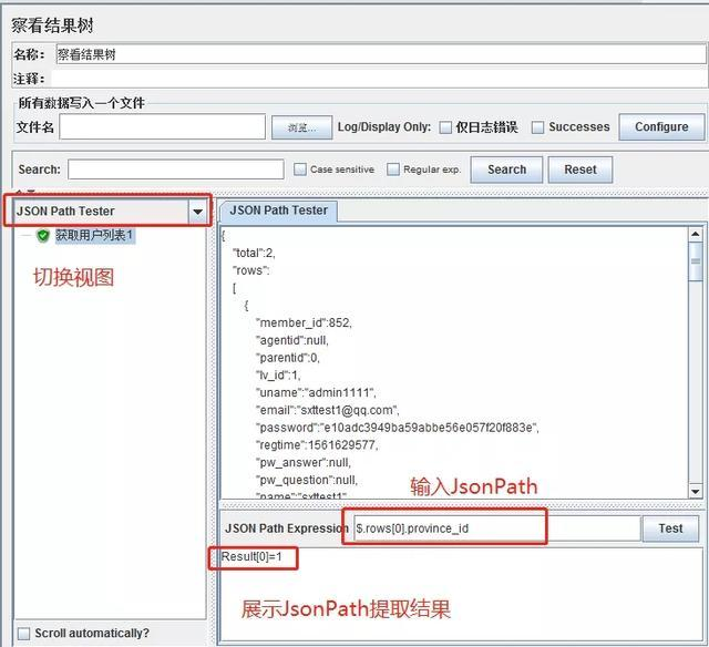 Json Path是用于确定 JSON 文档中某部分元素位置的语言。它将 JSON 数据转换为 DOM 树状结构,并提供在数据结构中寻找节点的能力。Jmeter提供组件来验证Json Path的语法正确性,以及元素匹配情况。可以在察看结果树中将响应报文的格式从Text切换为Json Path Tester,并在Json Path Expression栏中输入相应的Json Path ,点击Test,察看JsonPath的定位结果。