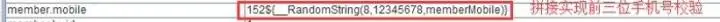 比如有些系统会校验手机号前三位,即可通过RandomString生成后8位数字,然后拼接满足需求的前三位数字组合。