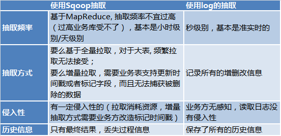 为什么使用log和kafka作为基础,而不使用Sqoop进行抽取呢? 因为: