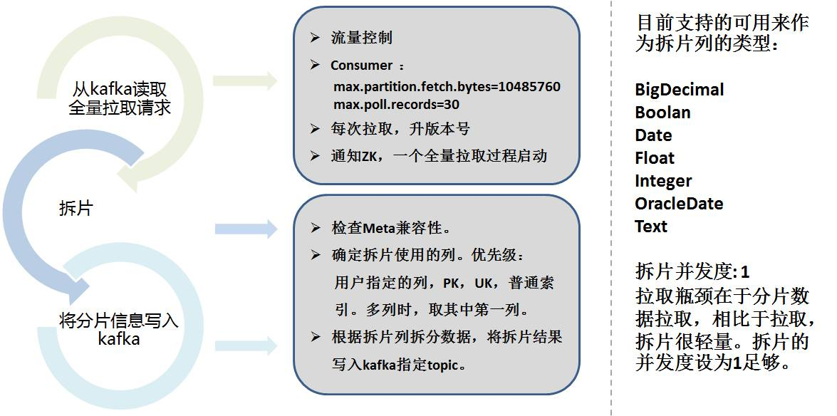 数据分片需要考虑分片列,按照配置和自动选择列将数据按照范围来分片,并将分片信息保存到kafka中。