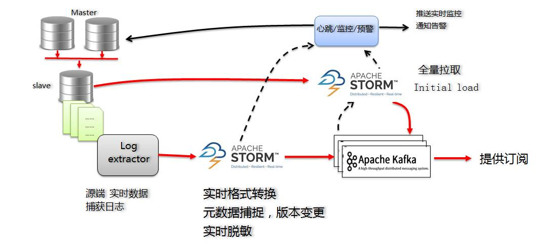 - Log extractor和dbus共同完成数据抽取和数据转换,抽取包括全量和增量抽取。