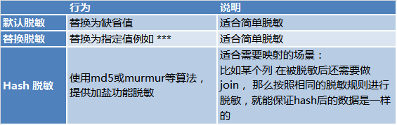 考虑到数据安全性,对于有脱敏需求的场景,Dbus的全量storm和增量storm程序也完成了实时脱敏的功能。脱敏方式有3种: