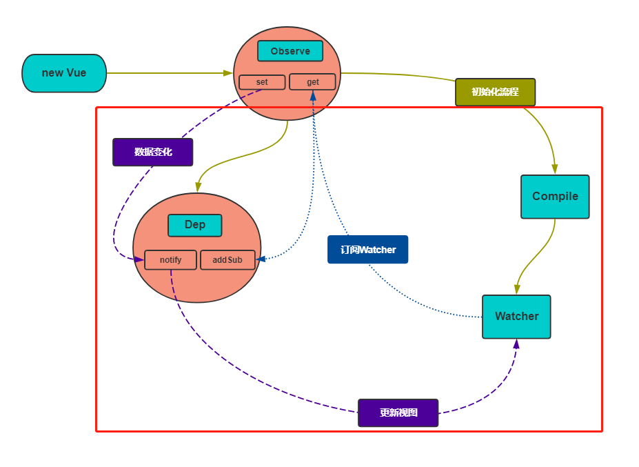 + dep.notify() // 数据被修改时 触发Watcher更新视图