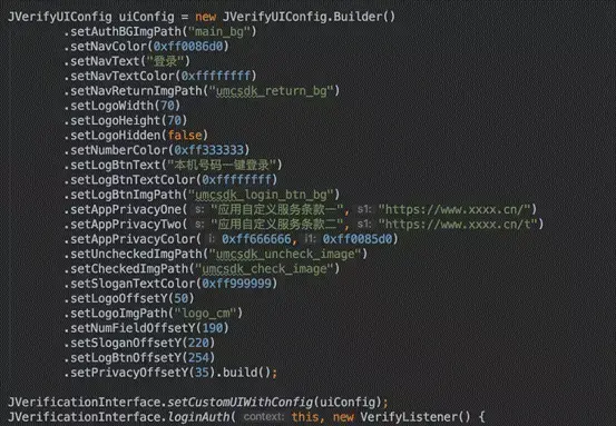 c) 如果你不喜欢默认的登录页面,极光认证一键登录 SDK 中也提供了自定义页面的接口,可以按照自己设计稿来修改 UI