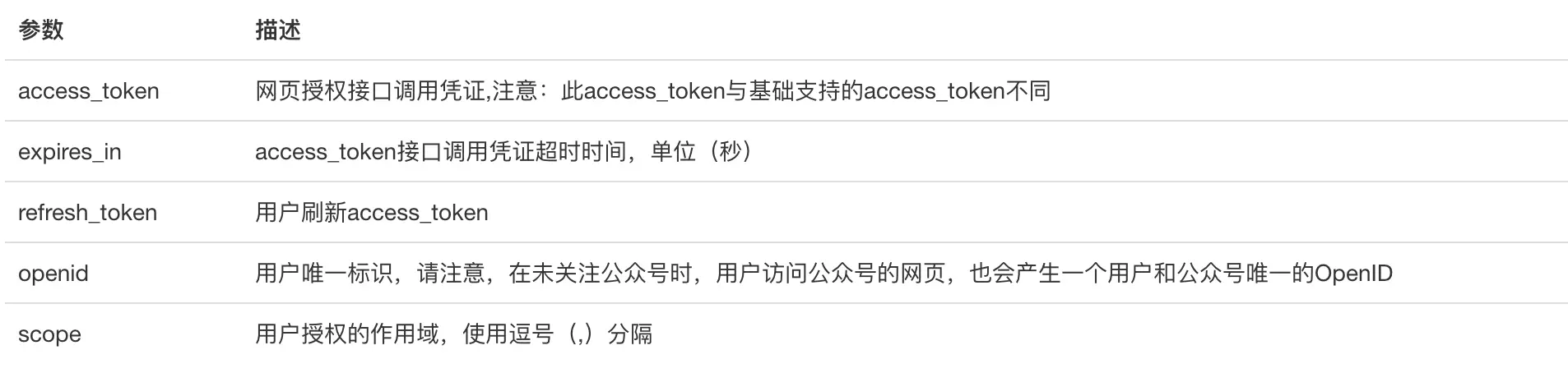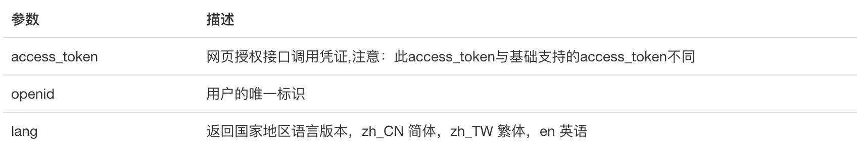 注意,这里的 access_token 和 调用公众平台API所需的基础 access_token不是一个东东,只是名字一样而已。