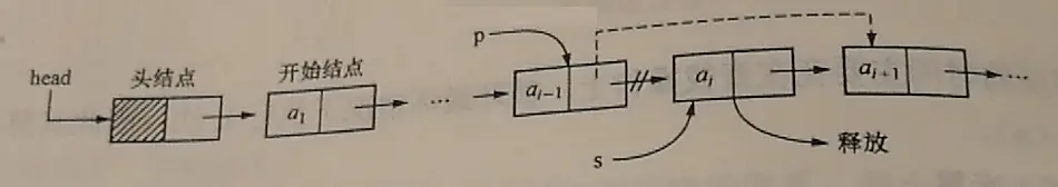 由于第i个结点的存储地址是存储在第i-1个结点的指针域next中,因此要先使p指向1第i-1个结点,然后使得p->next指向第i+1个结点,再将第i个结点释放掉。