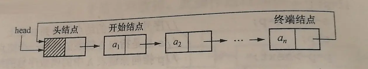 单链表中最后一个结点(终端结点)的指针域不为空,而是指向链表的头结点,使整个链表构成一个环。 -