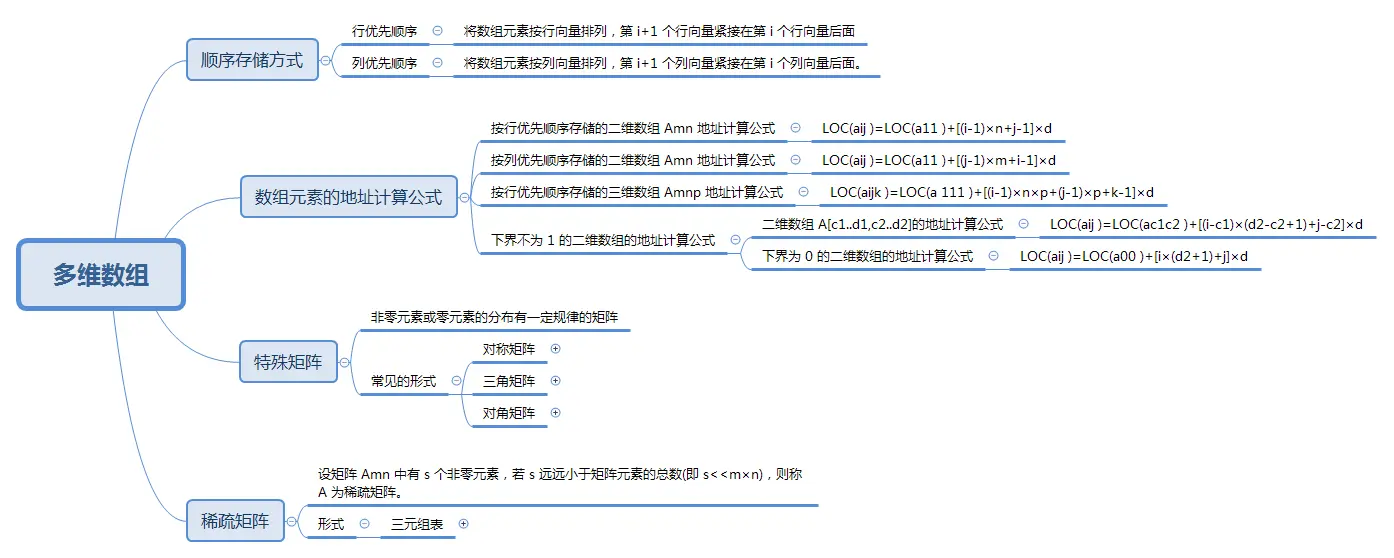 若i≥j时,k=i*(i+1)/2+j; 若i<j时,k=j*(j+1)/2+i; 因此,aij的存储地址的计算公式:LOC(aij)=LOC(sa[k])=LOC(sa[0])+k*d