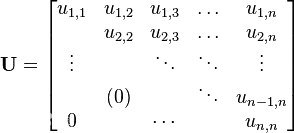 三角矩阵 三角矩阵有上三角和下三角两种。下三角矩阵的主对角线上方均为常数c或者零(图1)。上三角矩阵的主对角线下方均为常数c或者零(图2)。