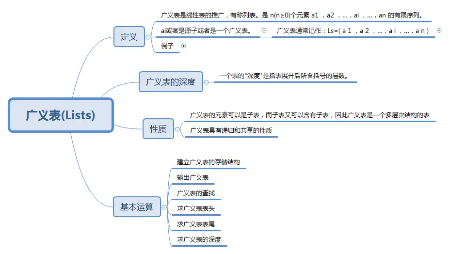 广义表是线性表的推广,又称列表。是 n(n≥0)个元素 a1 ,a2 ,…,ai ,…,an 的有限序列。