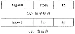 tag是一个标志位,用来区分当前结点是原子还是子表; 当tag为零值时,该结点是子表;第二个域为slink,用以存放子表的地址;