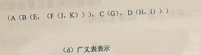 A=()-A是一个空表,其长度为零; B=(a)-B是一个只有一个原子的广义表,其长度为1; C=(a,(b,c))-C是一个长度为2的广义表,第一元素是原子,第二个元素是子表; D=(A,B,C)=((),(a),(a,(b,c)))-D是一个长度为3的广义表,其中三个元素是子表; E=(C,d)=((a,(b,c)),d)-E是一个长度为2的广义表,第一个元素是子表,第二个元素是原子; F=(e,F)=(e,(e,(e,...)))-F是一个递归的表,它的长度为2,第一个元素是原子,第二个元素是表自身,展开后它是一个无限的广义表;