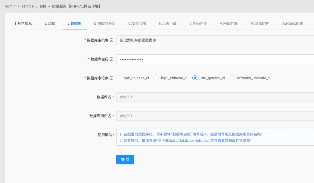 /mounts/php001/data/wwwphp001为填写的服务名称) 然后点击“提交”按钮,等待部署完成;