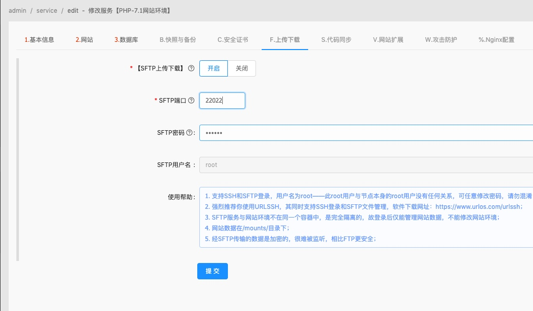 添加sftp (网站根目录