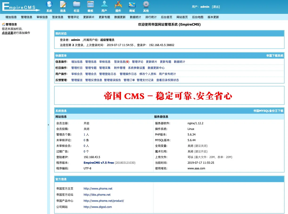 帝国cms初始化流程