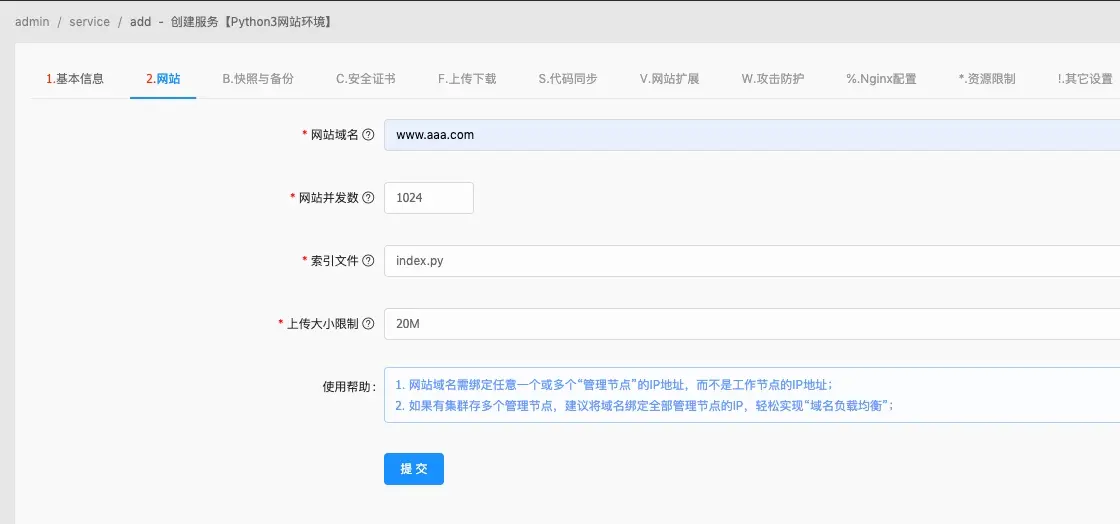 填写服务名称、选择运行节点、服务端口、选择智能部署