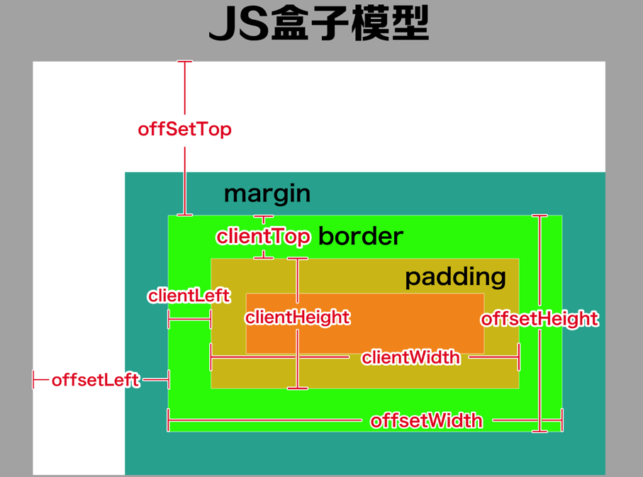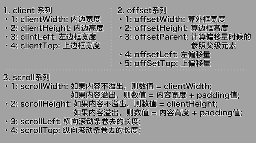- offsetHeight:内容高度 + padding(上下) + border(上下)
