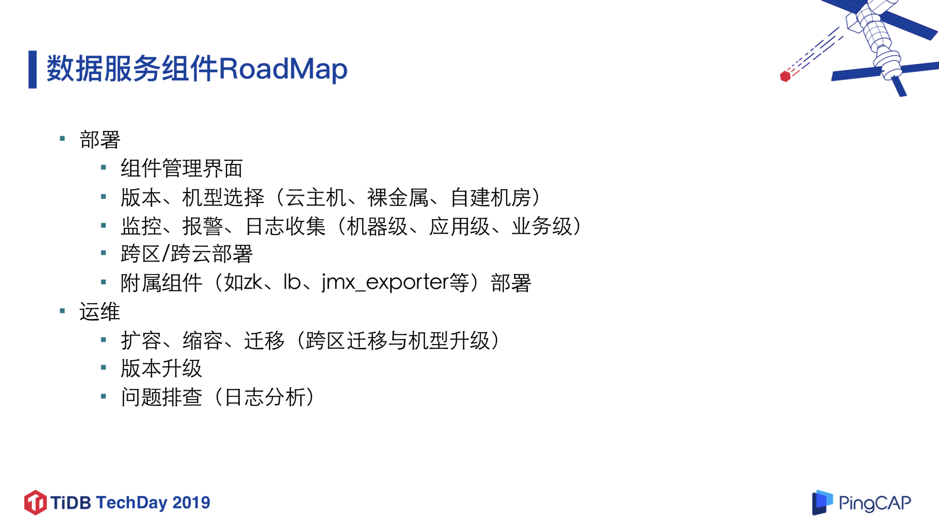 第三点是自动化运维,目前是往 TiDB + K8s 的方向推动,更好的解决集群部署问题,因为在虚机上部署还是比较痛苦的。