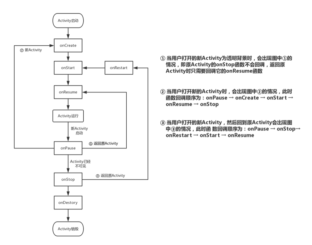 关于activity四个状态所在的生命周期: