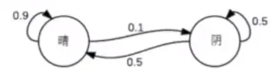 - 假如今天是晴天,明天变成阴天的概率是0.1
