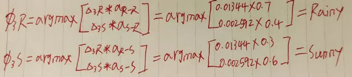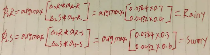 合起来的路径就是Sunny->Sunny->Rainy,这就是我们所求。
