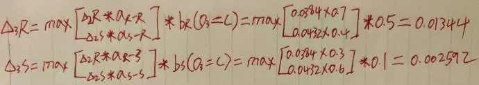 细心的读者已经发现了,第二步中要求的概率可以在第一步的基础上进行,同样的,第三步也会依赖于第二步的计算结果。那么这样做就能够节省很多计算环节,类似于动态规划。
