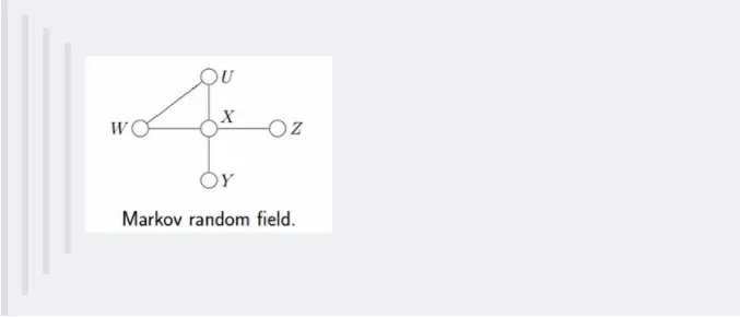 - 若上述网络是无向的,则是无向图模型,又称马尔可夫随机场或者马尔可夫网络。