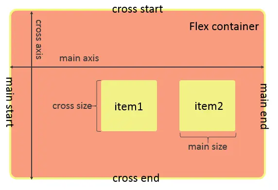 项目默认沿主轴排列。单个项目占据的主轴空间叫做main size,占据的交叉轴空间叫做cross size。