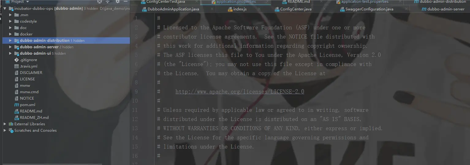 dubbo-admin-distribution:用于存放一些项目配置相关。