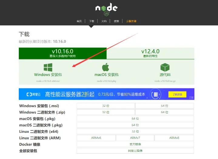 由于前端页面使用到了vue框架,所以需要下载nodejs,进入官网,进行下载。