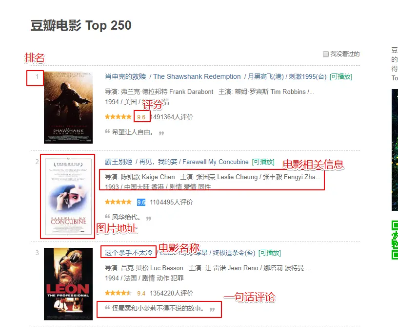 - 爬取豆瓣电影top250, 把结果保存到数据库