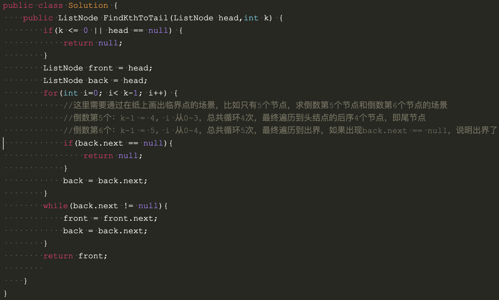 public ListNode FindKthToTail(ListNode head,int k) {
