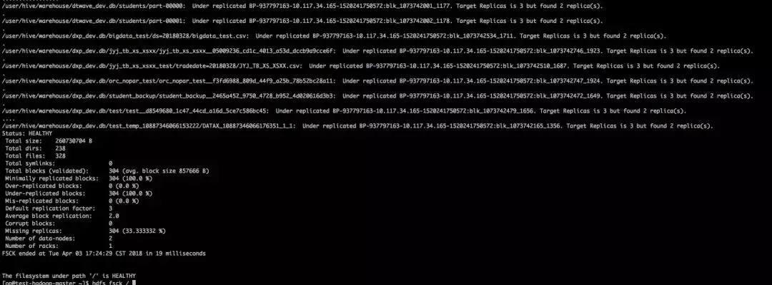 数据块列表获取。查看数据块的健康状态:hdfs fsck / -files -block或者hdfs fsck /