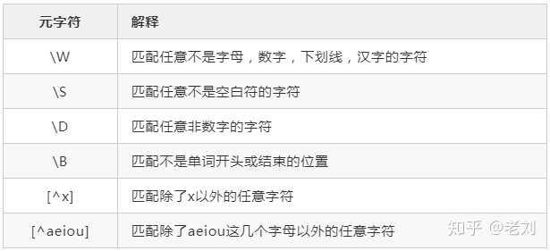 前面说到元字符的都是要匹配什么什么,当然如果你想反着来,不想匹配某些字符,正则也提供了一些常用的反义元字符: