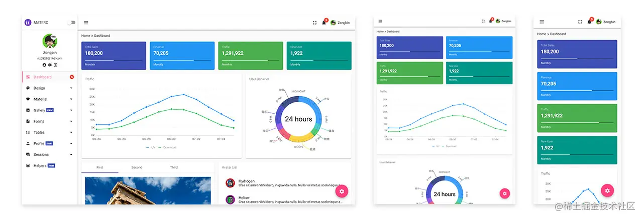 在预览页面,大家可以看到很丰富的颜色,而 Material 本身只有三种主色,通过颜色系统也可以很容易更换颜色。