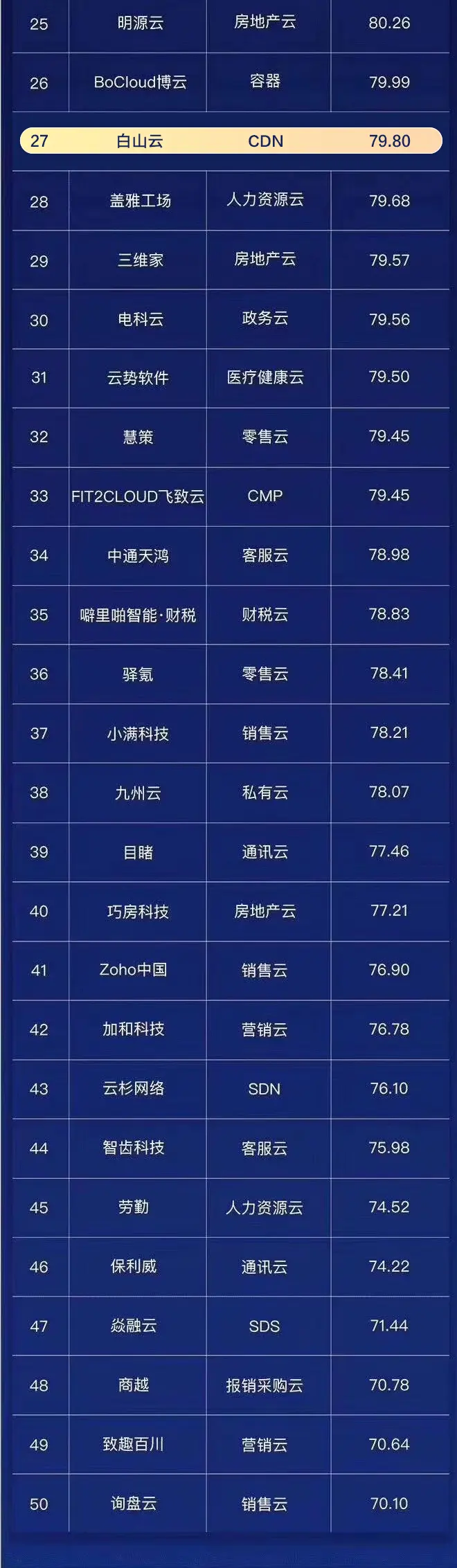 7月17日,“2019爱分析·中国企业云科技服务商50强”榜单正式发布。贵州白山云科技股份有限公司(下称“白山”) 凭借领先的综合实力,成为CDN细分领域唯一登榜企业。阿里云、腾讯云、金山云等企业也一同入选。