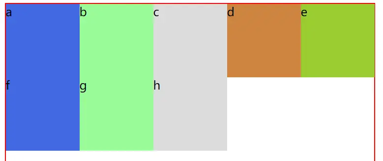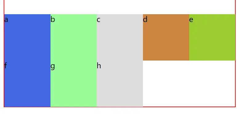 默认为1的情况(容器宽度为500px,6个宽度为100px的项目):