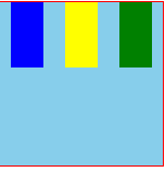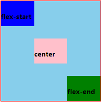 space-around:每个项目两侧的间隔相等。所以,项目之间的间隔比项目与边框的间隔大一倍