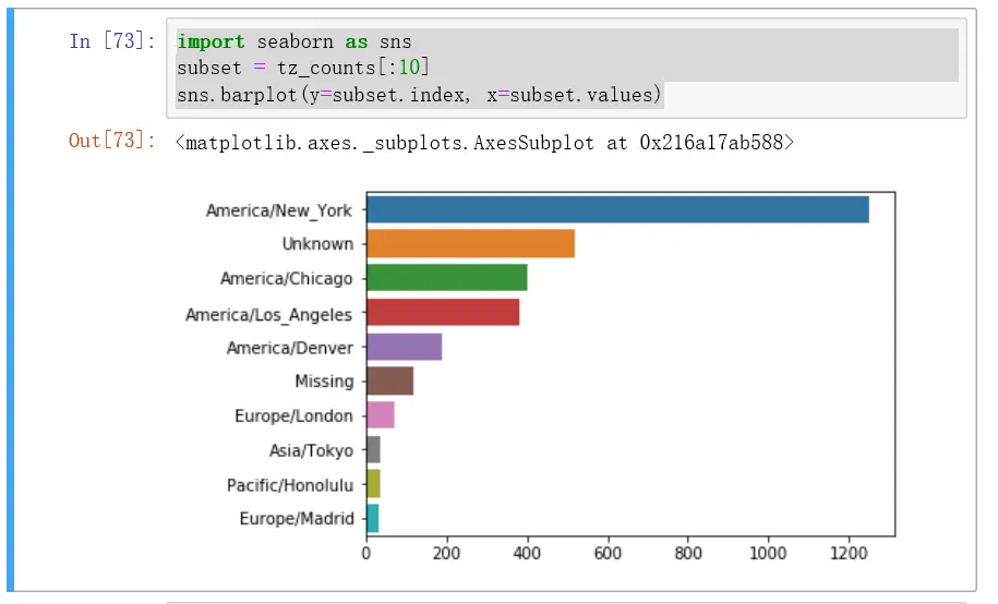 tz_counts[:10]#切片clean_tz = frame['tz'].fillna('Missing')